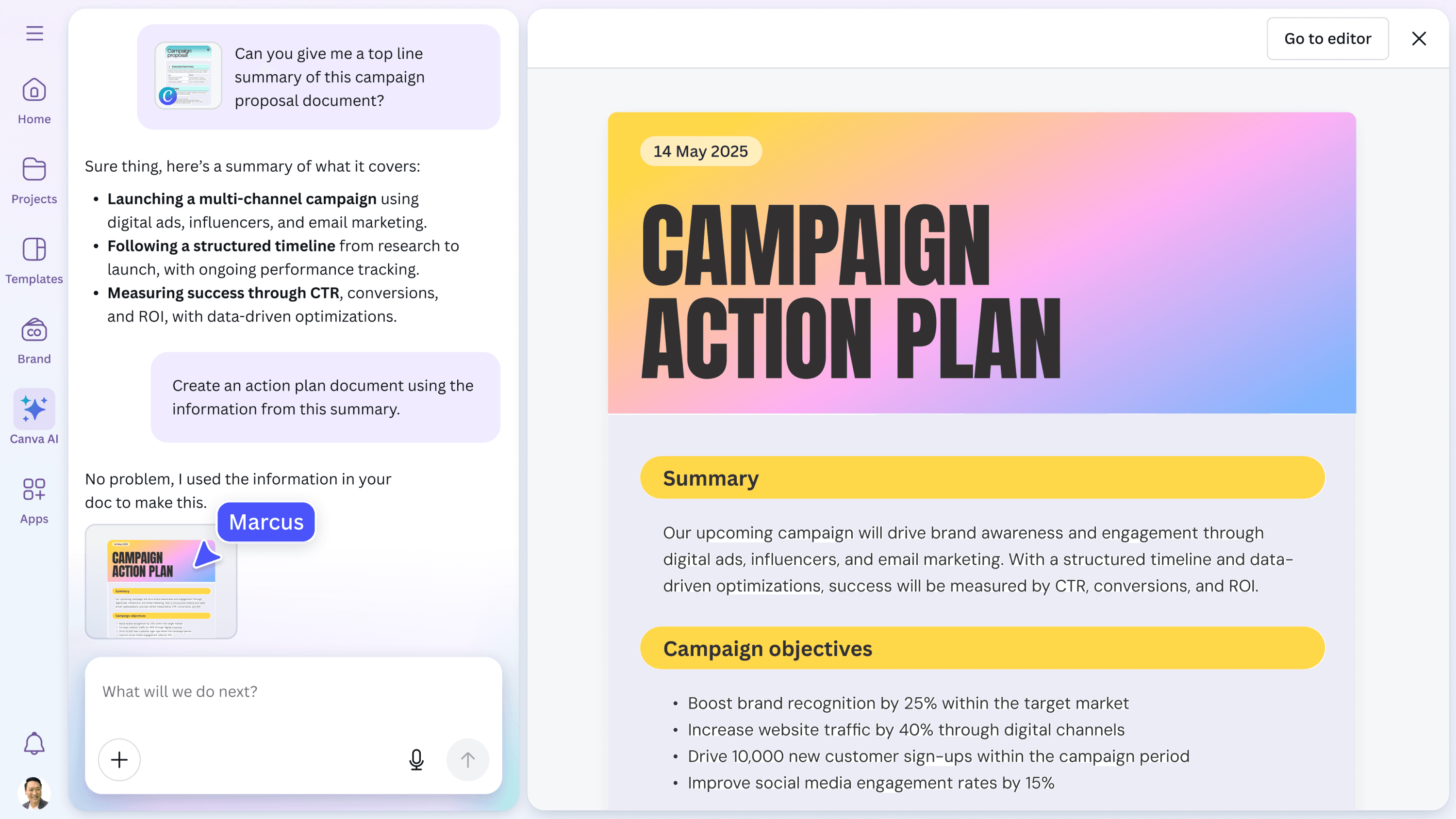 I worked on Canva’s Brand for Product team, designing product-led brand experiences that introduce new features and drive engagement. I created assets for key product flows, helping users understand and adopt new capabilities, and supported the rollout of Visual Suite 2.0 alongside several major AI features. I also contributed design support in the lead-up to Canva Create 2025, including assets for product launches and keynote presentations that brought these announcements to life on stage.