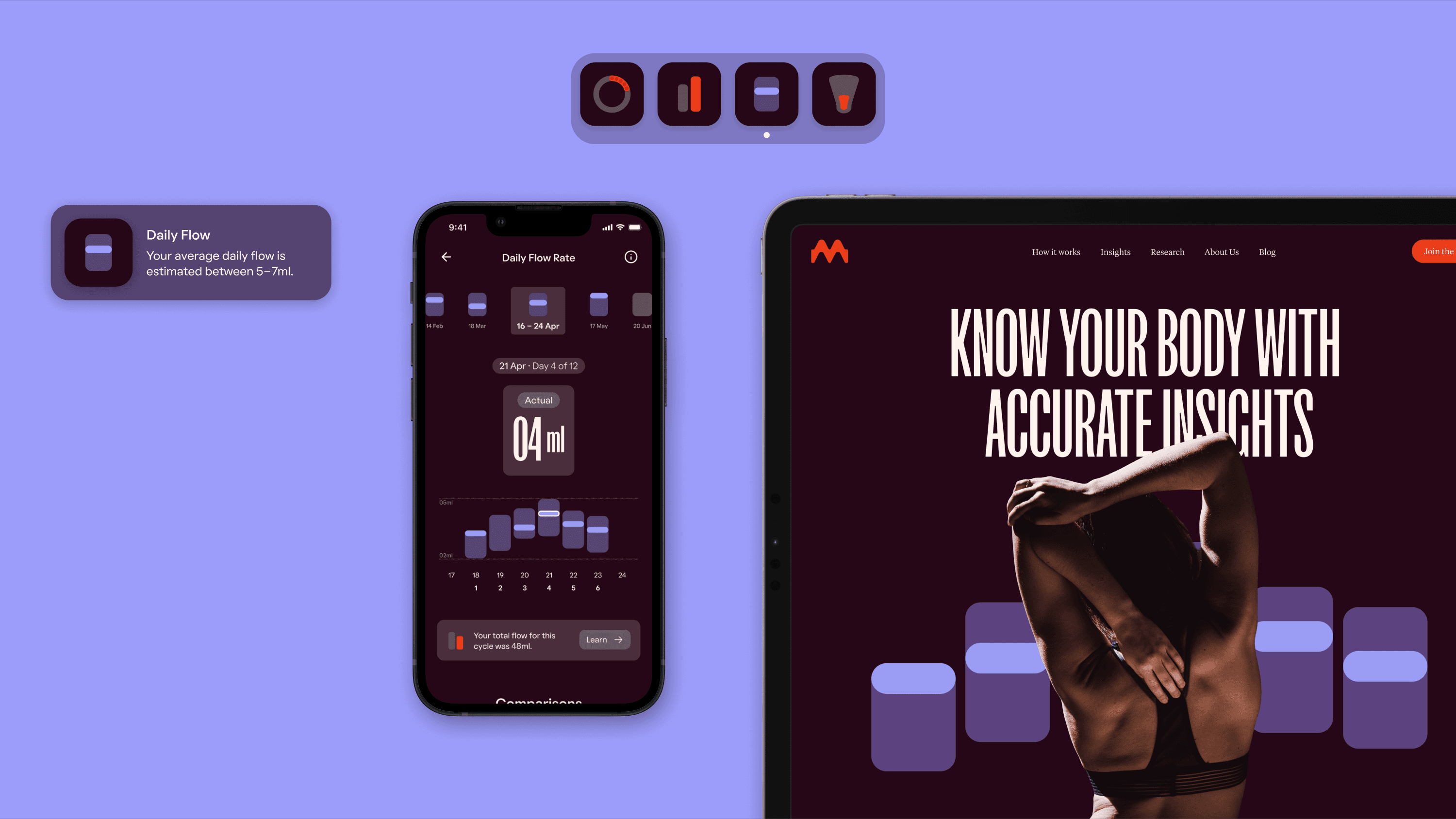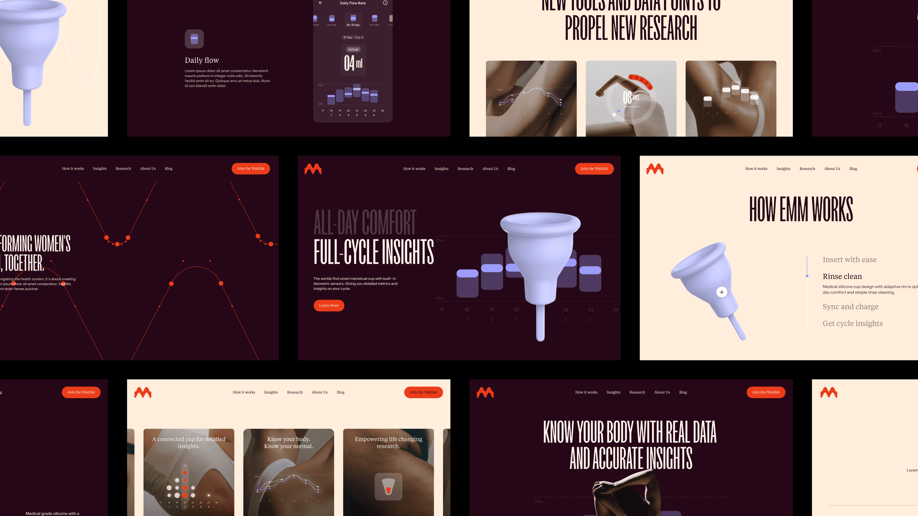 Emm is a femtech start-up developing the world’s first smart menstrual cup, using biometric sensors to give women unprecedented insight into their menstrual health. I worked on the MVP companion app, translating complex, never-before-seen data into a clear, reassuring experience for a cautious but curious audience. Guided by the principle “Understand your normal,” the product focuses on establishing personal baselines rather than overwhelming users with raw data, combining thoughtful education, distinctive data visualisation, and a sensitive approach to trust in intimate technology.